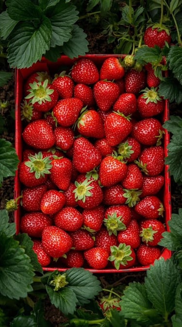 Vibrant & Sweet: "Sun-ripened strawberries, bursting with natural sweetness and a perfect red glow."